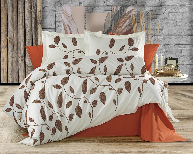 Sandra Nakışlı Nevresim Takımı 6 Parça Turuncu